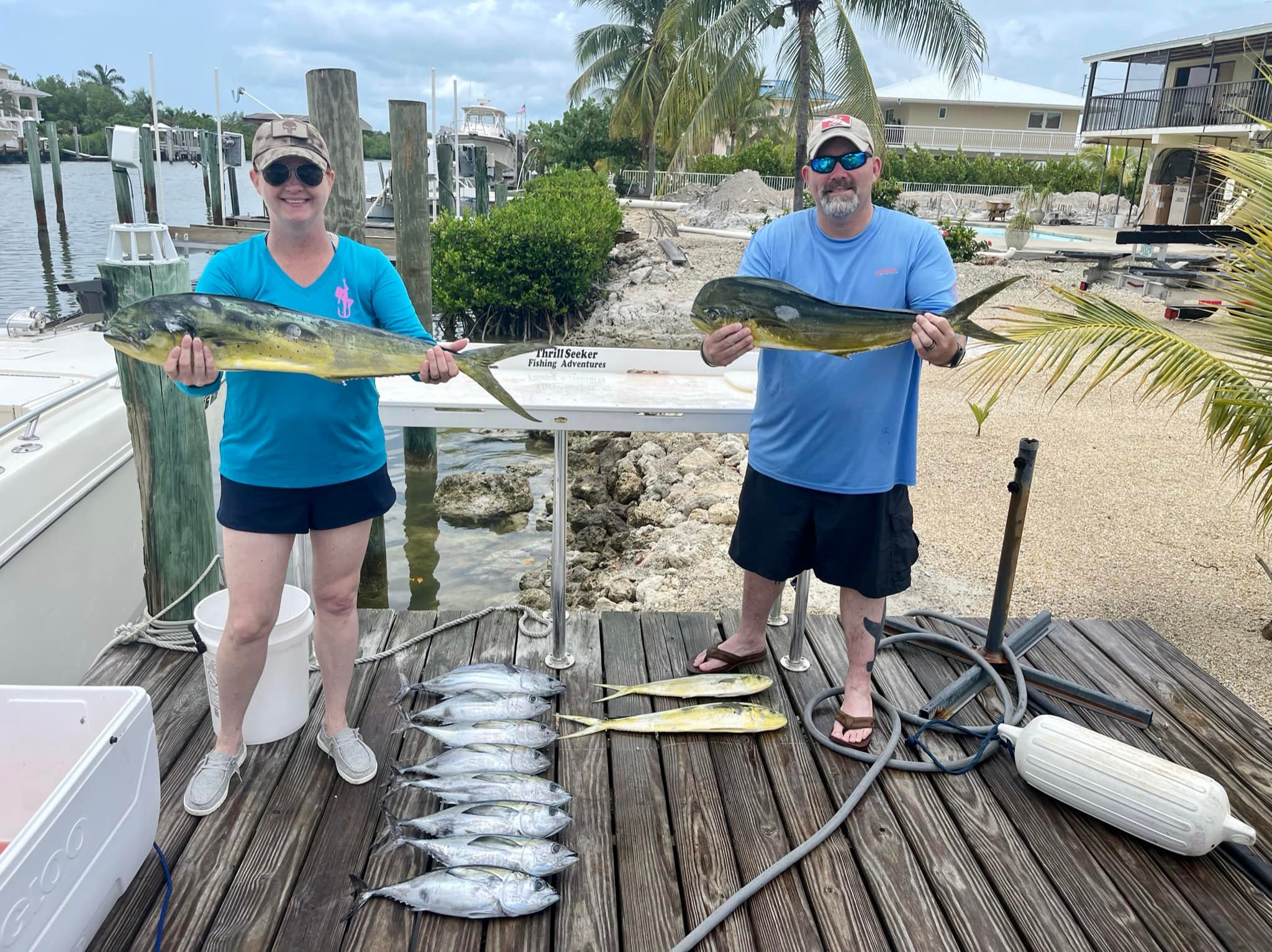 Started the day offshore fishing at 22 miles... caught our limit and then off to snorkeling at Sombrero Lighthouse where we saw yellow tail, surgeon fish and barracuda among others! Finished up the day having the fish we caught today prepared for us at a great restaurant. Mark even tried tuna nachos and I had a Bushwacker 🍹! We had an awesome day and we are worn out! More fun tomorrow though! Thrillseeker Fishing Adventures